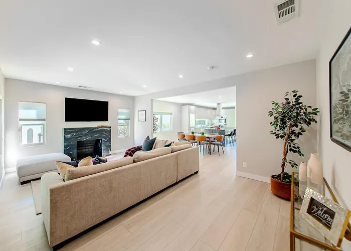 この別荘はユニバーサルスタジオハリウッドから7キロメートル離れた所で、ハリウッド ボウル ミュージアムから3.5キロメートルの場所にあります。 周辺の礼拝所には、そこから徒歩で約25分離れたアルバートソン・ウェディング・チャペルがあります。 Modern 5 Bed With Guest House & Pool West Hollywood ヴィラはラニヨン・キャニオン・パークから2.9キロメートル離れた所で、グリフィス天文台などのエンターテイメント施設から8キロメートル離れた所の場所にあります。